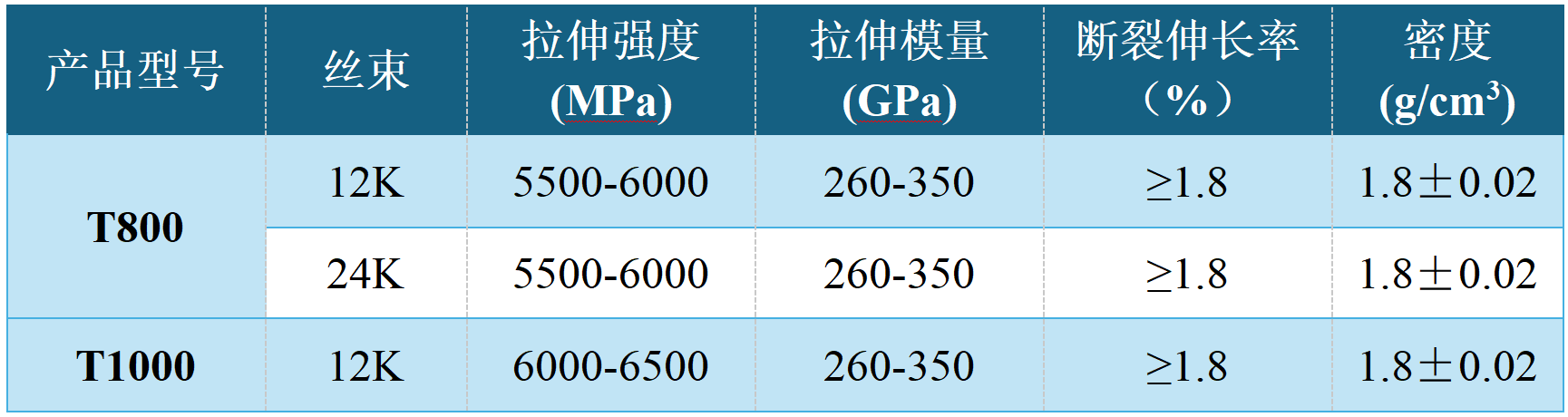 碳纤维产品关键指标: